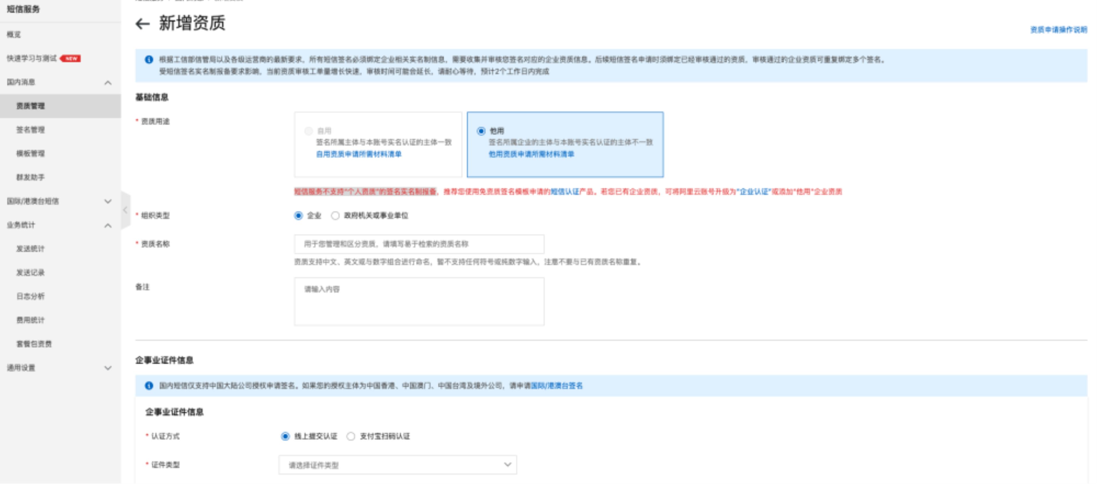 在当前的短信签名实名制要求下,个人账号的自用资质无法通过签名实名制报备。