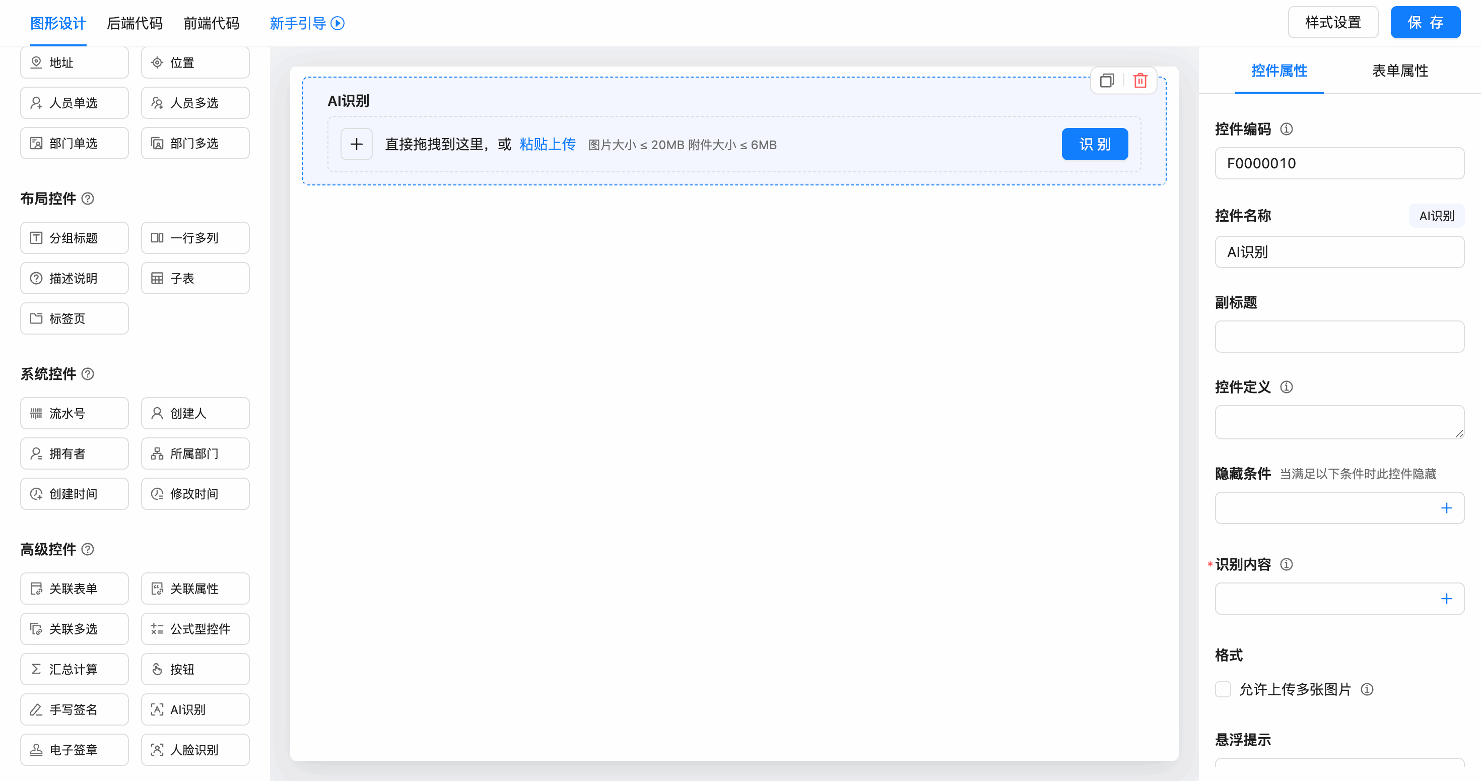 样本图片:可上传一张示例图片(大小≤5MB),用于识别字段配置参考。