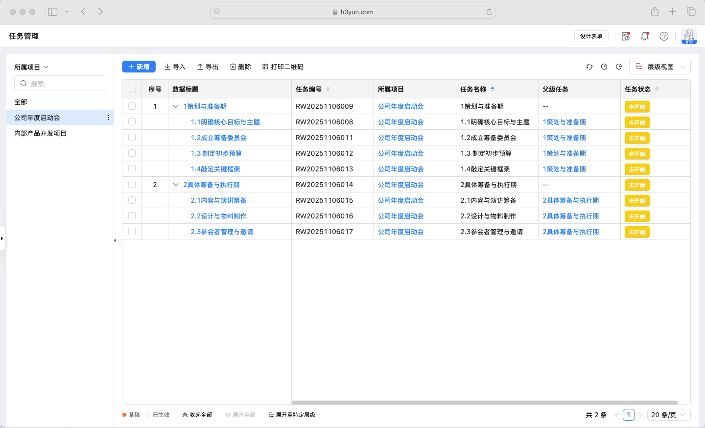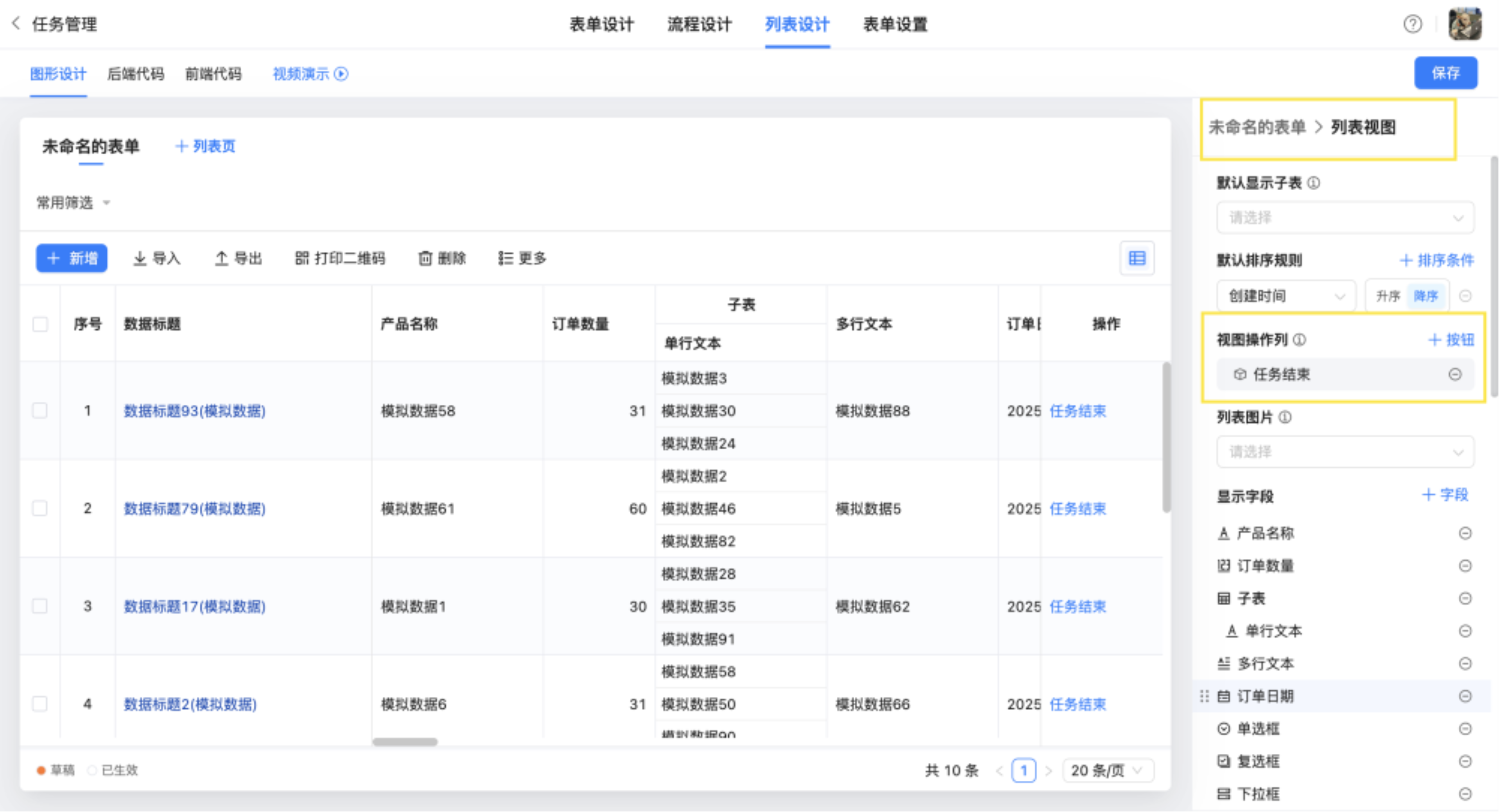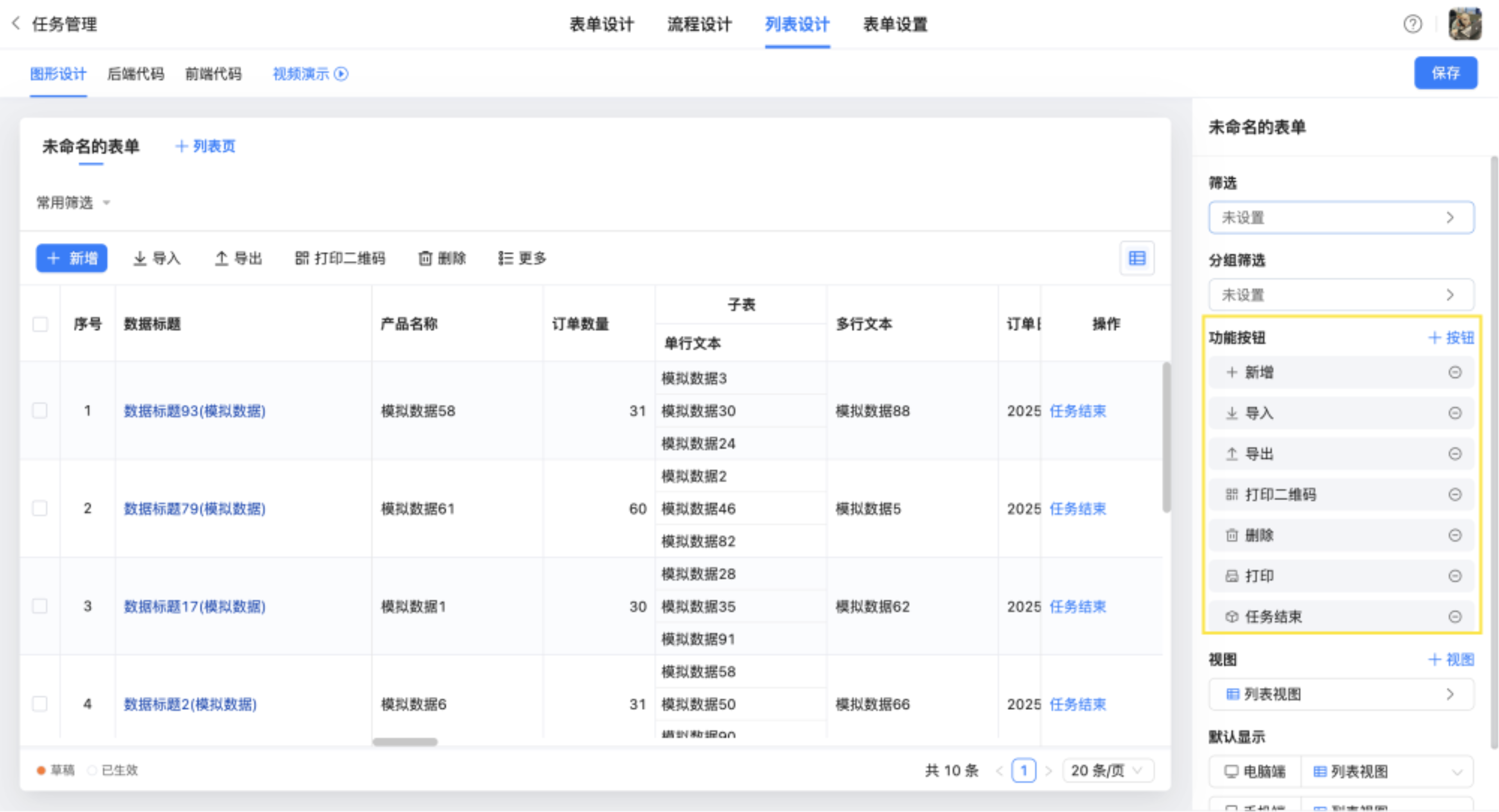 · 打印、删除按钮支持单条和批量操作,按钮入口可配置:表单详情页、页面视图操作、列表工具栏。