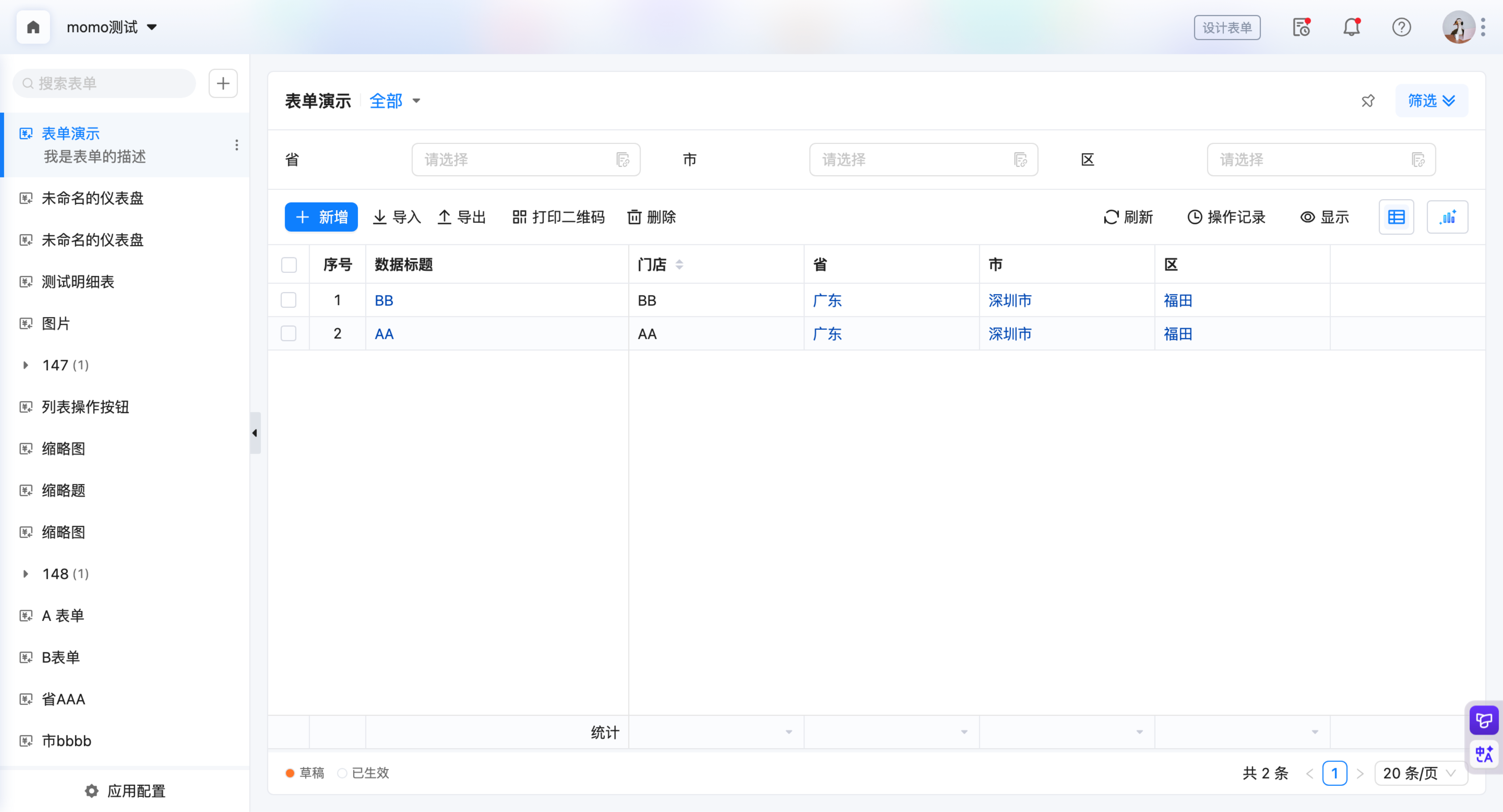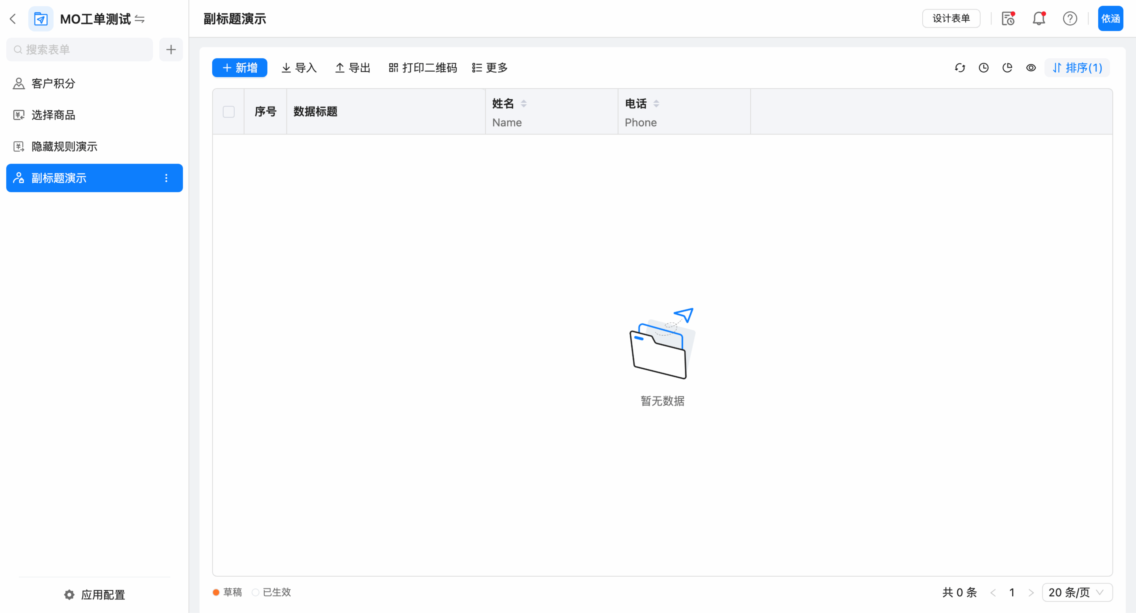 所属应用:本次操作表单所属的应用;