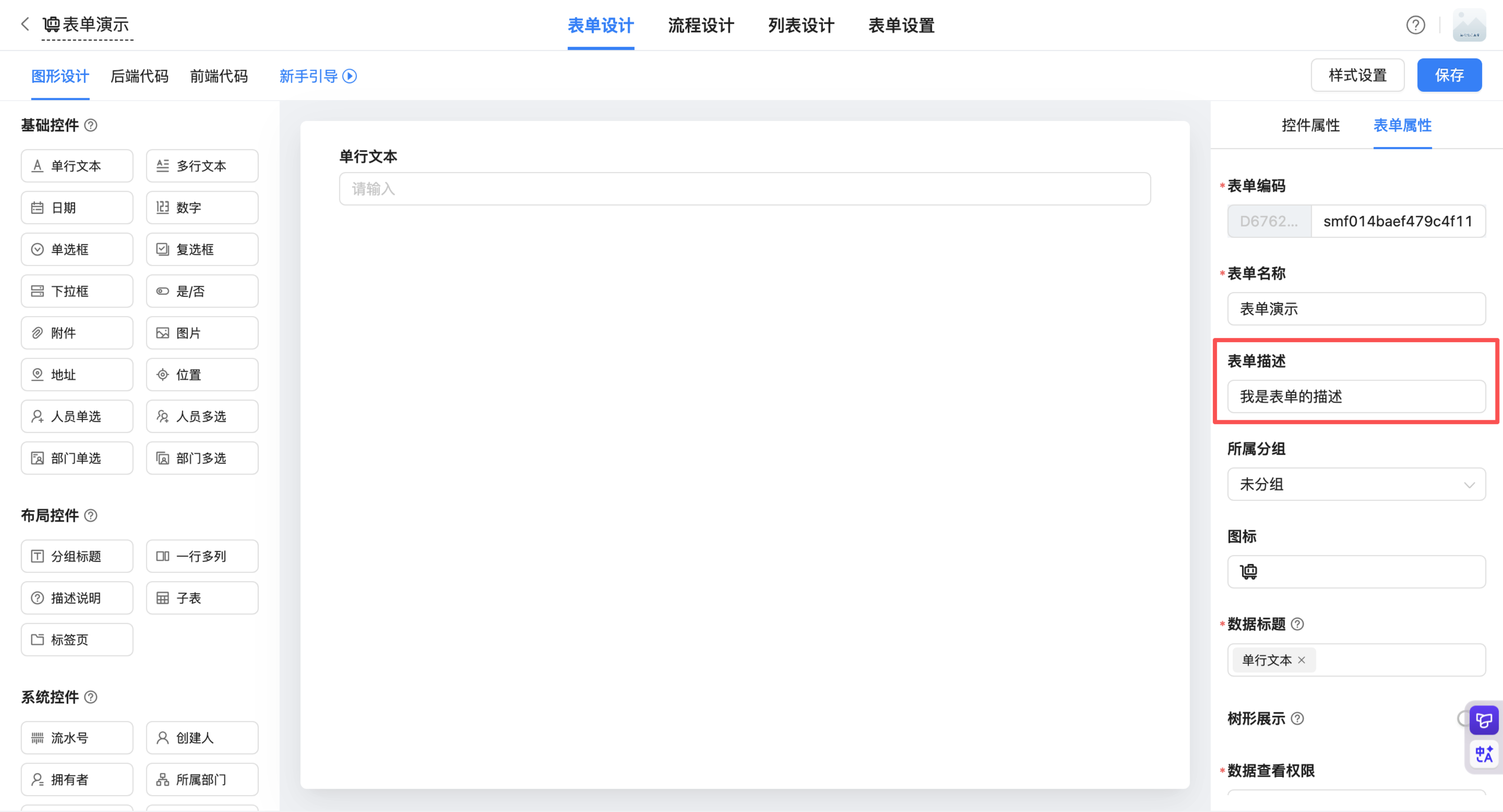 路径1:设计表单 > 表单设计 > 表单属性> 表单描述