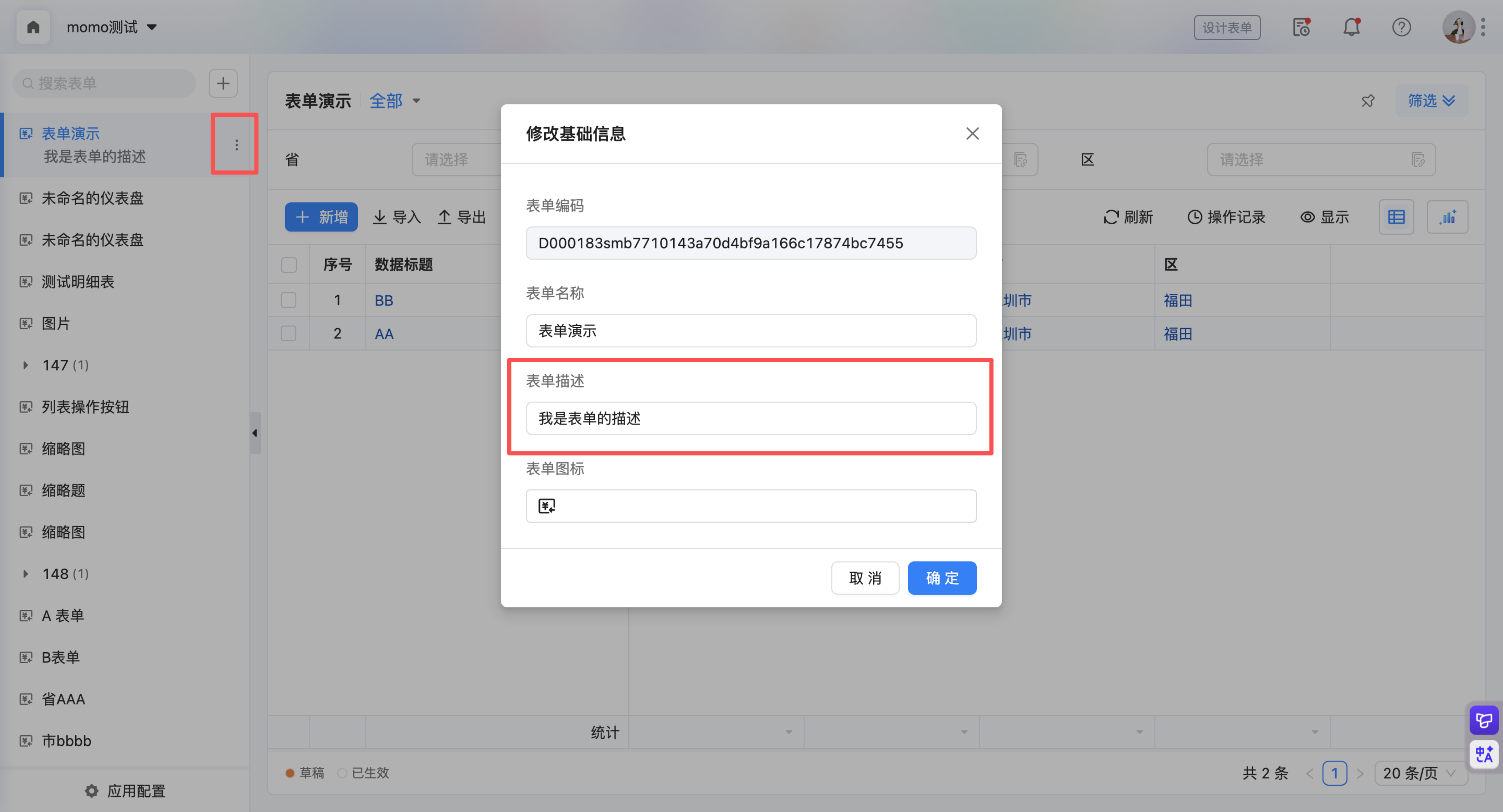 路径2:表单导航 > 点击更多icon > 修改基础信息 > 表单描述